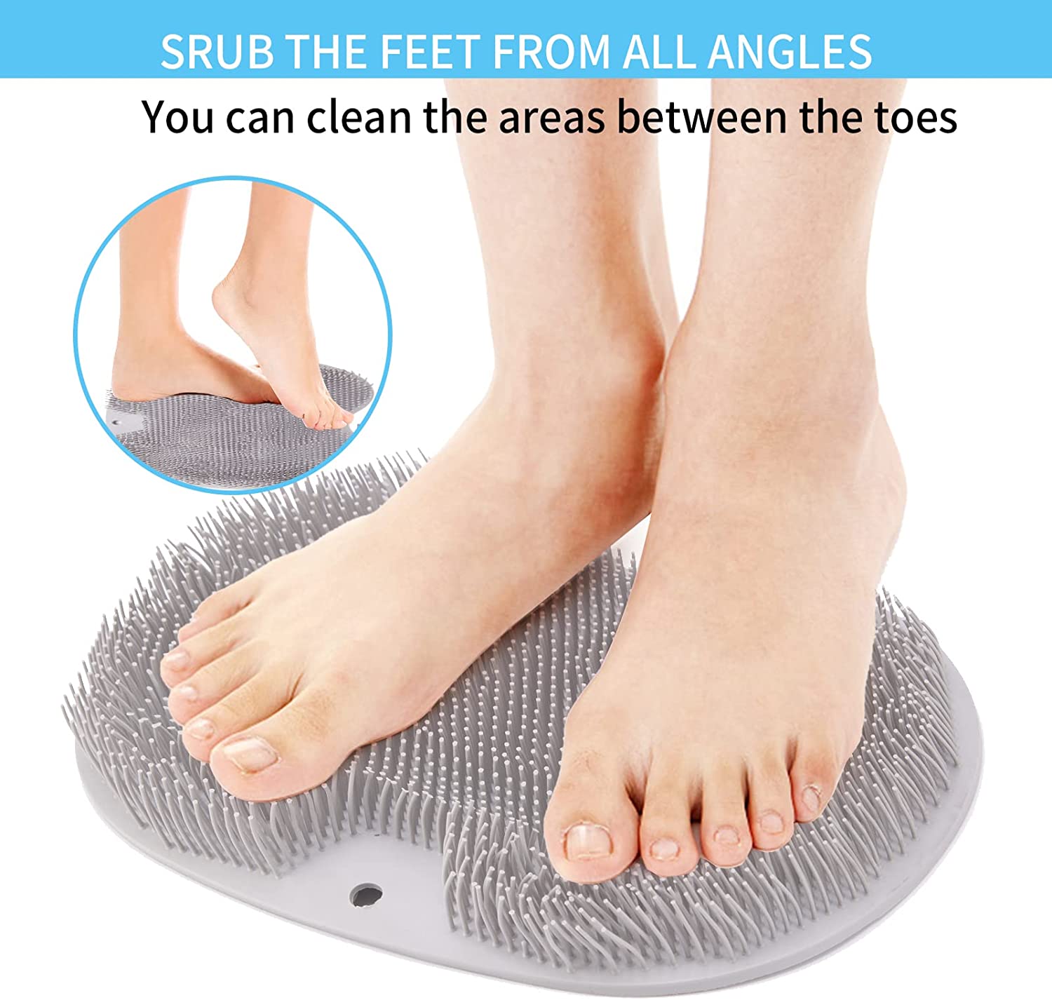Meet Your Needs as Much as Possible: Tight bristles keep your feet clean with every wash. Enjoy a great experience at home. Our products will massage your tired feet to your liking. Leaving your feet feeling relaxed and comfortable again. Make you happier and healthier. The bottom has a round hole that sucks the ground. Effectively preventing you from slipping in the bathroom. With hook for hanging storage. Our products are made of high quality silicone, which is compact yet soft and comfortable. Rugged and durable with a long service life. Basic Commodity Information: Measurement: 30*23cm. Weight: 325g. Material: Silicone. Color: Grey.